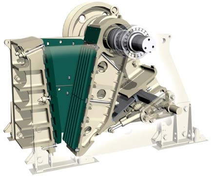 LCC 系列顎式破碎機(jī)都裝備有雙楔塊排礦口調(diào)整系統(tǒng),其堅(jiān)固且調(diào)整快捷的優(yōu)勢(shì)在行業(yè)內(nèi)已經(jīng)得到證明,該系統(tǒng)在對(duì)于由于供電中斷導(dǎo)致系統(tǒng)帶負(fù)載停機(jī)而需要清腔時(shí)尤其有效;橡膠減震裝置和限位塊可以吸收震動(dòng)峰值載荷,并允許破碎機(jī)垂直和縱向位移,從而有效地降低破碎機(jī)對(duì)基礎(chǔ)的沖擊;電機(jī)機(jī)座與破碎機(jī)機(jī)架一體安裝,減少了破碎機(jī)安裝空間和 V 形帶的長(zhǎng)度。